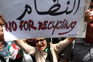 AttachmentA demonstrator holds up a banner during a protest demanding the removal of the ruling elite in Algiers 27/07/2019 Author: 8esckq