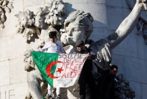 AttachmentDemonstrators wave an Algerian flag at the Monument to the Republic during a protest against President Abdelaziz Bouteflika in Paris 29/03/2019 Author: 8esckq